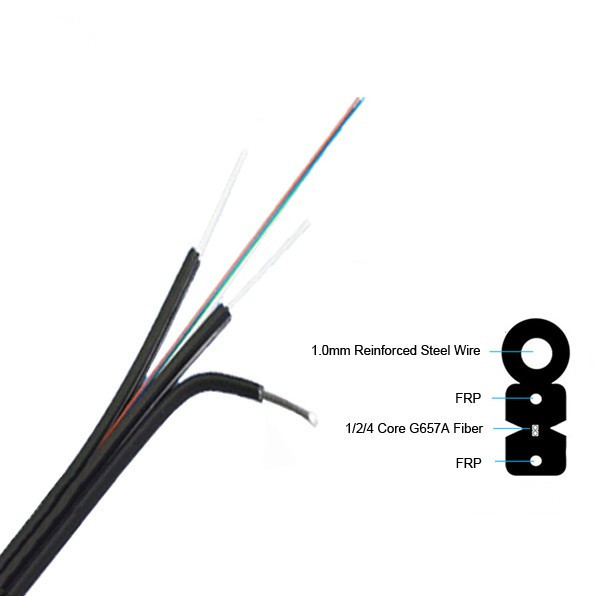 FTTH Cable directly connected to their homes, their bandwidth, wavelength and transmission technology type are not restricted. The optical fiber unit id positioned in the centre. Two parallel strength member are placed at the two sides. A steel wire as the additional strength member is also applied ,then, the cable is completed with a black HDPE sheath.